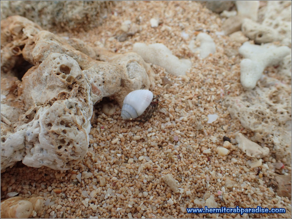 After the second kayak tour, I still had another two hours until the ferry was set to return to Ishigaki Island. Buses on the Okinawan Islands are very infrequent; hence I decided to walk up north to Hoshizuna Beach, where I found wild land hermit crabs for the very first time in my life. These are ruggies (Coenobita rugosus), who are the most common species along the beaches of Okinawan islands.