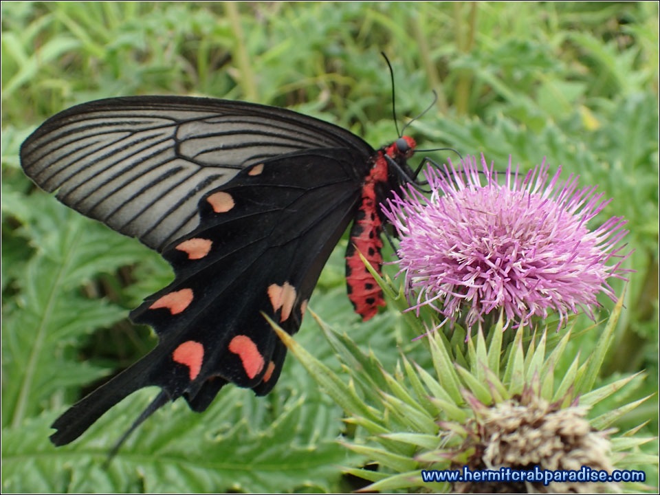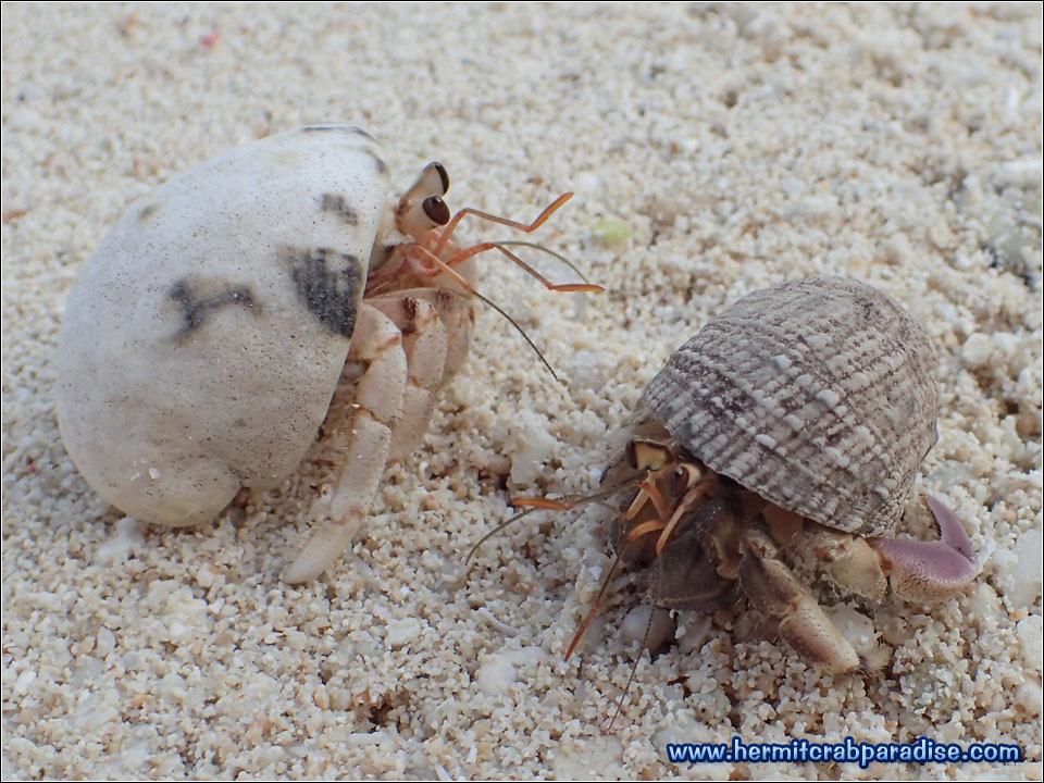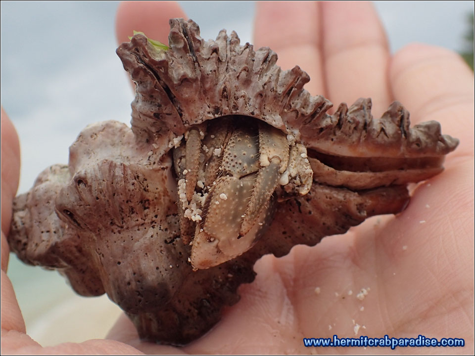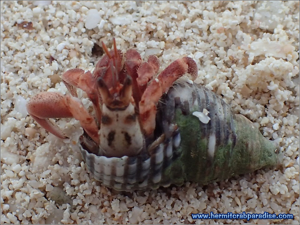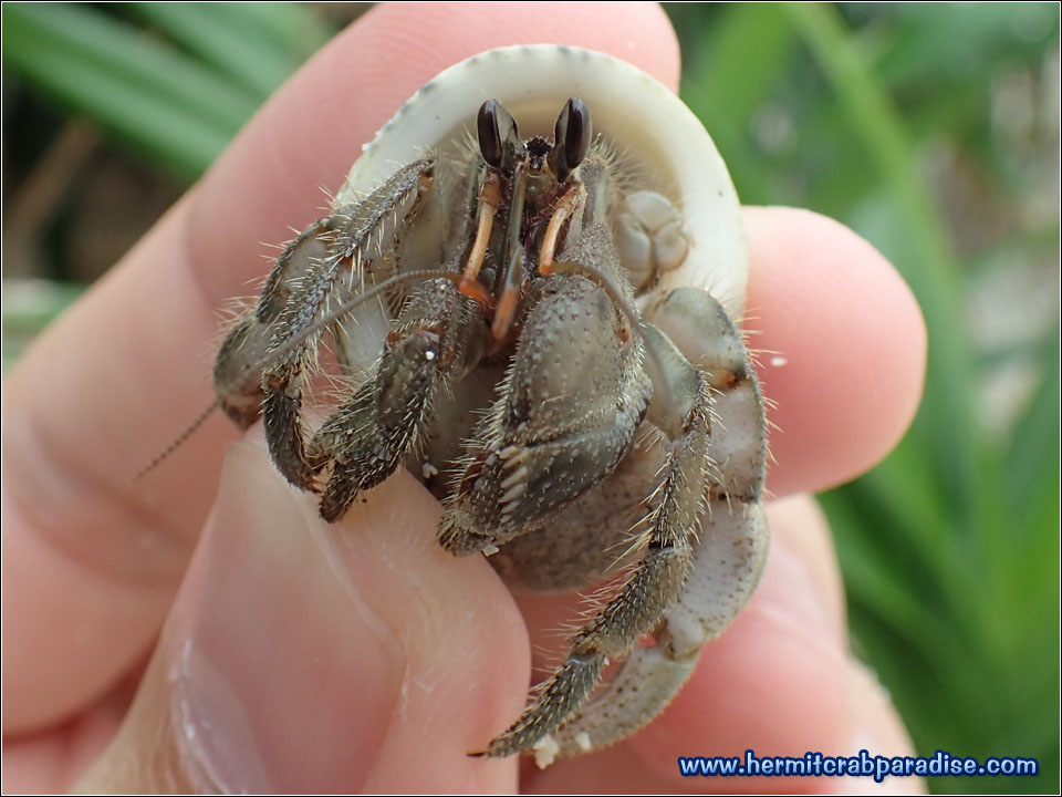 At the time of this trip, I was still learning how to distinguish between the different species of land hermit crabs. Fortunately, I took many close up photos of crabs that looked interesting or suspicious. It turns out that this guy below is the one and only cav (Coenobita cavipes) I saw during my trip! Notice how he doesn't have any ridge (////) marks on his big claw like the rugs?